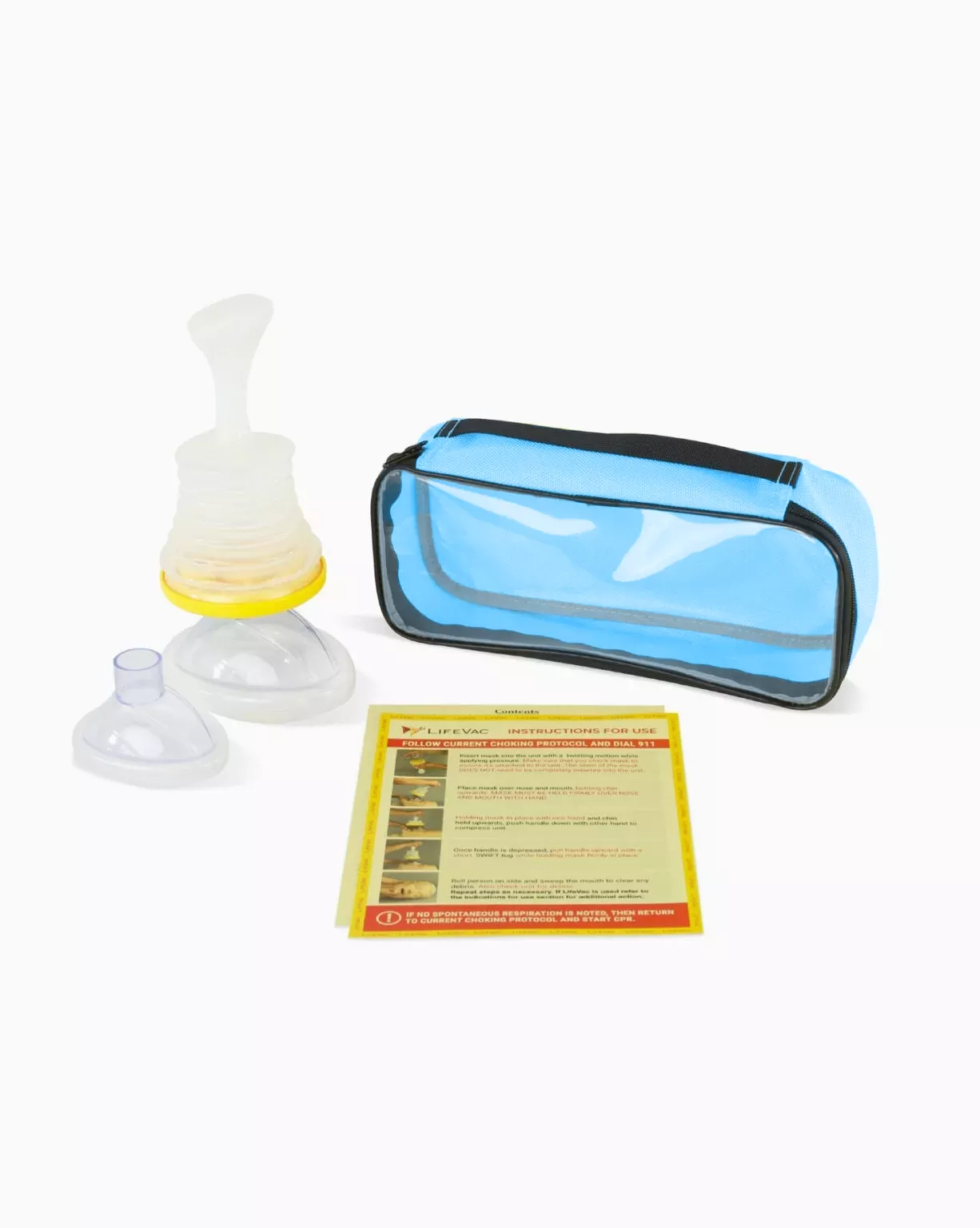 The perfect baby shower gift! The LifeVac Travel Kit comes with 1 adult mask, 1 pediatric mask & instructions for use literature in a clear and blue travel bag.